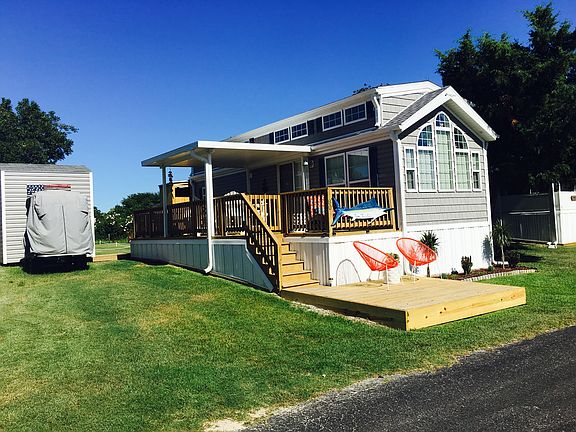 2014 Kropf RV Park Model Located on Lot 80 in well-maintained Bogue Sound RV Park next to Emerald Isle Bridge in Cedar Point. Access to Intracoastal Waterway with dock for boats, fishing, and relaxing!! 2014 Kropf RV Park Model Located on Lot 80 in well-maintained Bogue Sound RV Park next to Emerald Isle Bridge in Cedar Point. Access to Intracoastal Waterway with dock for boats, fishing, and relaxing. Spacious layout inside RV with 2 lofts. Furnished with queen bed(bedding)in master bedroom, queen mattress in one loft, and sleeper sofa in living room as well as 3 TV's. Bead board cabinets with extensive storage. Stainless appliances including refrigerator, microwave, and gas stove. Electric fireplace with remote control. Large three level deck outside with covered shelter, outdoor shower too!!! Exterior with cedar shake vinyl siding and rain gutters. Very private lot with Large backyard(no RVs or Park homes can be put in backyard) Outside storage building 6 X 8 X 8. Annual lot rent of $4,250 (includes grounds, pool, & dock maintenance, Wi Fi Internet, cable TV, water, garbage, boat storage) Like New condition!! Lot Rent PAID thru MAY 2018