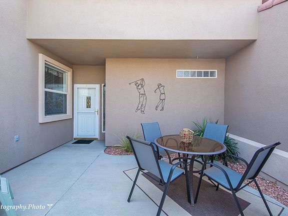 This immaculate town home is ideally positioned in Summerhills, a gated, golf course community. This desirable home site offers miles of UNOBSTRUCTED mountain and fairway views. The scenery is exceptional and the orientation is perfect for year round use of the covered patio and cozy front courtyard. The landscaping is mature and green and completely maintained by the Home Owner's Association. Upgrades are abundant in this once model home and a GORGEOUS FURNITURE PACKAGE is available. The kitchen boasts brand new stainless appliances and has beautiful raised panel cabinets with Corian counter tops and new hardware. The great room is spacious with a sliding glass door out to the covered patio. The master suite has a private door to the patio, a roomy walk-in closet and spacious en-suite w/ duel vanities. A costly queen sized Murphy bed in the guest bedroom is ideal and provides great space for visitors. The laundry room includes washer & dryer and plenty of cabinets for storage. A water softener and RO system are a bonus. The garage has cabinets and is air conditioned & carpeted. The HOA provides access to the Mesquite Vistas community pool & spa, tennis courts & fitness facility.