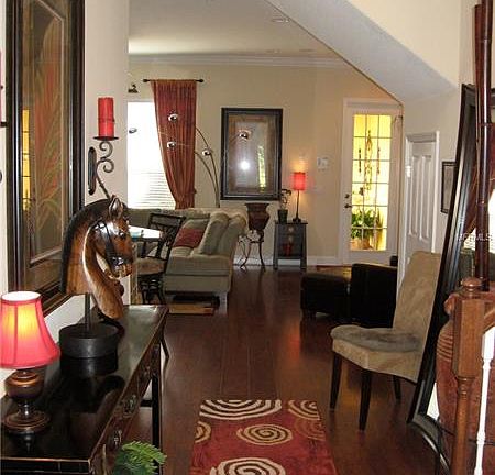 A rare opportunity to own a townhouse in this waterfront complex. This 3/2.5 townhome with lake views has a 2 car detached garage with an outdoor courtyard for relaxation. When you enter the home you appreciate the high ceilings and open floor plan. The formal dining room faces beautiful lake charity with plenty of natural light. Entering into the kitchen you have stainless steel appliances, custom 42in wood cabinets, granite counters, a custom built-in dual controlled wine chiller, breakfast bar and ample counter space. The kitchen opens to an oversized great room with lots of natural light that overlooks the private courtyard and wood/laminate floors. Upstairs has laundry and three bedrooms. The large master bedroom has a walk-in closet. The ensuite has dual sinks with under cabinet lighting, a large soaking tub, and separate walk-in shower. Two additional bedrooms are across the hall with lake views. This home was built with over 25k in custom upgrades. You can see these upgrades in the Flooring, kitchen, and bathrooms. As well as the downstairs is prewired for surround sound with speakers built in. The owner had extra insulation added on the second floor to help keep cool in the summers. The private courtyard has irrigation built in, just needs to be turned back on owner will leave the valve. Home is under video surveillance. Photos of property are with owners decorations and furniture. Currently, its tenant occupied paint colors and window furnishes are the same but different furniture.