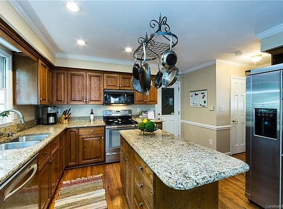 Outside, itâs welcoming with the classic architecture that is so âœCharlotteâ; full brick exterior, traditional style, front load garage, fenced yard and a beautiful Magnolia that speaks true Southern Charm. Inside, the floorplan offers spaces for casual or formal livingâ¦you decide! The spacious rooms and open kitchen layout with eat in area flowing to the den with that great brick fireplace create an easy style of living. Many features in place include granite and stainless appliances in the kitchen. Renovations already done for you include glamor master bath suite, HGTV-like full bath on 2nd level, and renovated half bath on main level. Other assets youâll enjoy are: hardwoods on the main floor, a dual level deck at back, an irrigation system with Toro Control, ceiling fans and newer carpet. We Love this houseâ¦you will too! And once this belongs to youâ¦remember: "Let these walls hold joy, the rooms create laughter, and the windows open possibilityâ