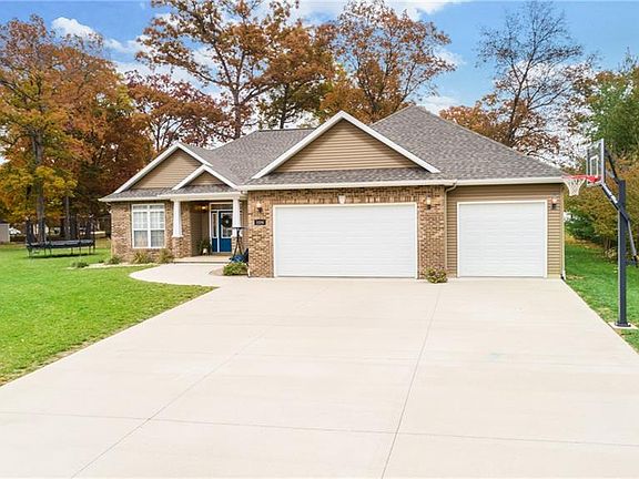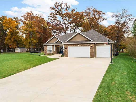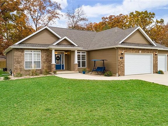 Welcome home! This beautiful Ranch home with attached 3 car Garage features 9' ceilings throughout home. The main living areas feature hardwood floors, a gas fireplace, expansive windows, and a 5'5" x 8'5" Quartz Island with seating for 6. The Kitchen features all Black Stainless appliances. The private backyard features both a covered patio and extended uncovered patio. The large .59 acre lot will sure to please and is in great shape for this new of a yard! The Master Bedroom/Bath is split on other side of home from other Bedrooms and features a 11' walk in closet. There are built in "cubbies" both in Garage and at hallway Entry. the stairway to the lower level is open and wood steps. The finished lower level features two additional Bedrooms, another full Bath, and a large Family Room/Rec Room space. The furnace features a built-in Humidifier and there are two Water Heaters featuring recirculating hot water. There are custom window shutters and draperies throughout the home.