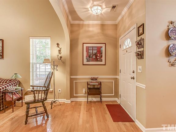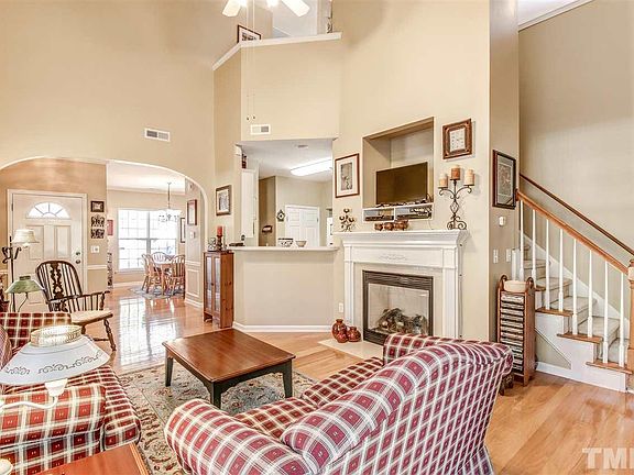 This Charming Home has Beautiful Hardwood Floors, Gas Log Fireplace, Cathedral Ceiling, Bonus Room/Loft, and a Separate Dining Room. Open Concept Living at it's Finest. 1st Floor Master Bedroom with Vaulted Ceiling and HUGE En-Suite Bathroom and Walk-in Closet. Largest Wooded Lot in the Neighborhood with Beautiful Trees and Easy Access to Walking Path. Large Covered Patio! 1 Car Garage with Great Storage Space. Close to Southpoint! Community features low HOA with pool.