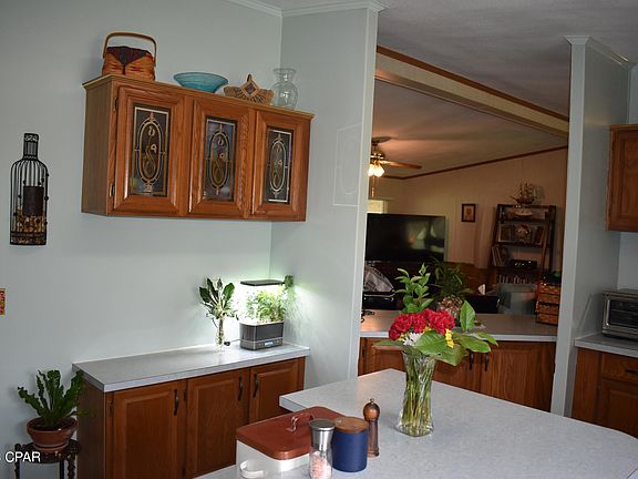 Fruit treesReal brick wall skirtingMetal roofMetal sidingDouble wideCrown moldingVaulted ceiling
