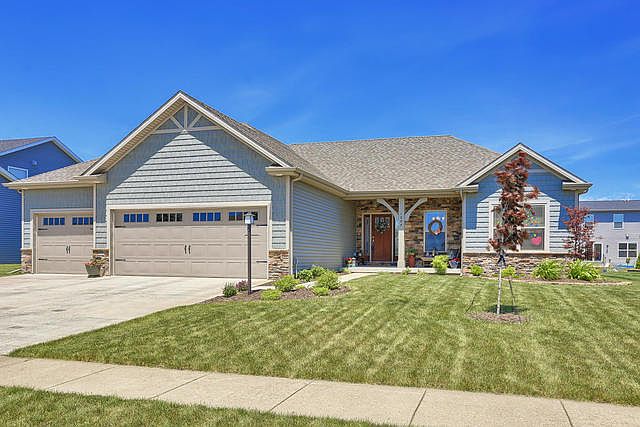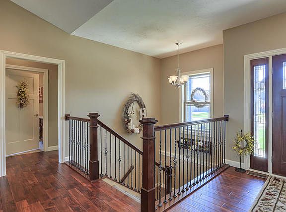 No detail was missed in this custom built home by Signature Homes. Hand-scraped style hardwood flooring runs from the foyer through the open great room, kitchen & dining area. The great room features vaulted ceilings and a gas log fireplace with a double mantle. Throughout the rest of the home you will find 9' ceilings and insulated interior walls. The gorgeous kitchen features granite countertops, high end stainless steel whirlpool appliances, and under and over cabinet lighting installed throughout. The master suite includes a tray ceiling, whirlpool tub, a large tiled shower, and access to the screened in porch. You'll love the convenience of having the laundry room accessible from the spacious master closet or the mud room adjacent to the garage. Off of the dining room you will find glass french doors that lead to an amazing screened in back porch which has been wired for TV set up. Just outside the porch, you can relax on the patio on the built-in composting decking seats or take a dip in the hot tub. Gas lines for grilling have already been installed for convenience. The 3 car garage is heated and has also been wired for TV. The finished basement offers abundant living space with a wet bar, an additional bedroom, full bathroom, a gym that could easily be converted to a 5th bedroom or home office, and plentiful storage. See virtual tour & floor plan!