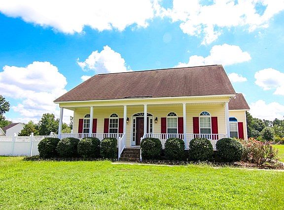 CUTE as a BUTTON! Low Country Design with Country Rocking Chair Front Porch * Low Maintenance Exterior * Two Story Entry Foyer * Hardwood Flooring Flowing Throughout Entire Family Room with Gas Log Fireplace and into Separate Dining Room * Kitchen Features Breakfast Bar, Plenty of Counter & Cabinet Space Plus a Large Pantry * Breakfast Nook * First Floor Master Suite with Walk in Closet, Soaking Tub & Separate Ceramic Tiled Shower * 2 Spacious Bedrooms Upstairs * Side Entry into Mud Room & Laundry Area * Privacy Fenced Back Yard with Grilling Deck and Patio - Great for Outdoor Entertaining! * Convenient to I 95 and Hwy 70 Bypass