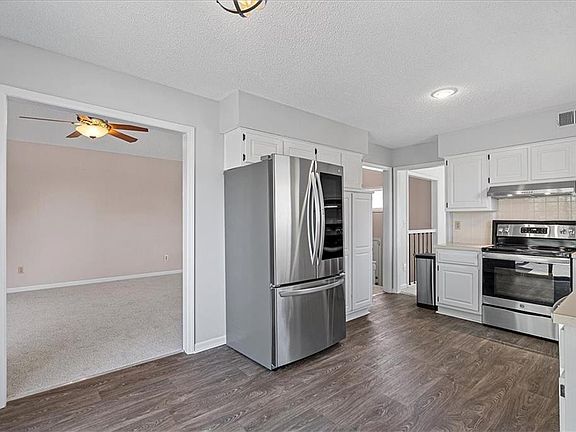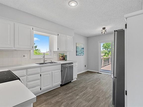 Wonderful home in Olathe just needs you to move in! A great split entry that feels very open and inviting welcomes you in to a large vaulted ceiling family room. The kitchen features stainless steel appliances and a dining space that would also make for a wonderful office. Three bedrooms can be found on the main level along with two full bathrooms. Newer composite deck off of the kitchen with fenced in back yard provide space for plenty of outdoor fun. Carpet throughout the home is brand new with most areas in the house freshly painted. Almost every window and sliding glass door have were replaced in the last year. With its proximity to Olathe schools, shops, and Garmin, this home is prime location for all those looking in the Olathe area!