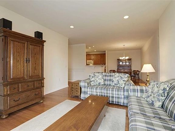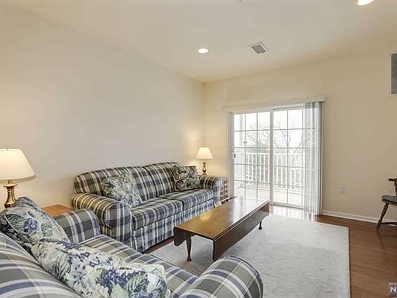 No more shoveling for you! Beautifully maintained, maintenance free 55+ condo in The Gatherings. Pristine hardwood floors throughout, open space kitchen, dining and living area feature NYC Skyline views. The large master bedroom suite has 2 walk in closets and master bath. Additionally there is a large guest bedroom and bath. The Clubhouse features Entertainment Space, Pool Table, Gym and Bocce Ball Court. Enter garage for parking and storage unit access. Easy access to elevator will get you home quickly!
