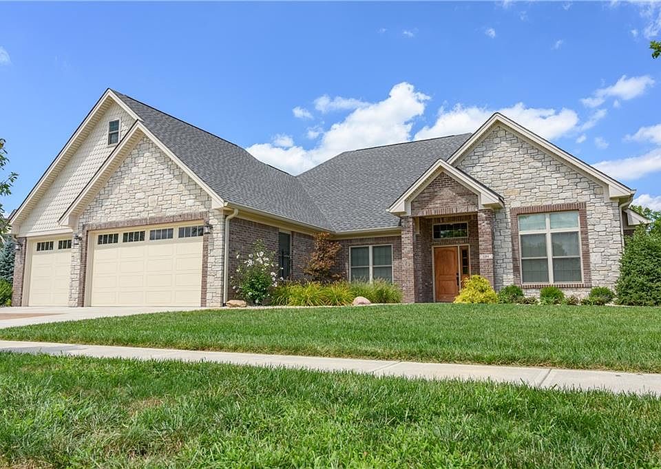 IMMACULATE 3 bed, 3 bath, 3-car garage Mike Waugh custom built ranch home in the DESIRABLE FRANKLIN'S HERITAGE TRAILS. Close to I-65, Franklin College, and Hillview Country Club. Nearly 1/2 acre lot including stocked pond and access to the Franklin Greenway Trail out your back door. Split floor plan, 9 ft. ceilings throughout! Gorgeous open family room & eat-in kitchen. Amish cabinets w/granite counter tops, farm sink, double convection oven, all stainless steel appliances. Huge Master Suite w/fully-tiled walk-in shower. His & Hers granite sink vanities, walk-in closet. Slow down and enjoy your morning coffee in your screened-in back porch w/beautiful stamped concrete floors and great views of the water. 3 ft. doorways throughout. NO HOA!