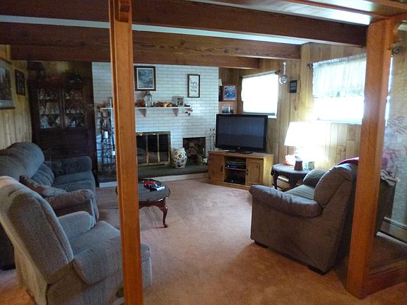 Unique ranch house that is larger than it appears. This 2 bedroom house has 4 rooms in the lower level & a 3/4 bathrrom. Main floor features include large, deep closets, white brick fireplace in the living room & all apppliances. The 1 stall attached garage is currently used as a family room but can easily be converted back. So many possibilities.