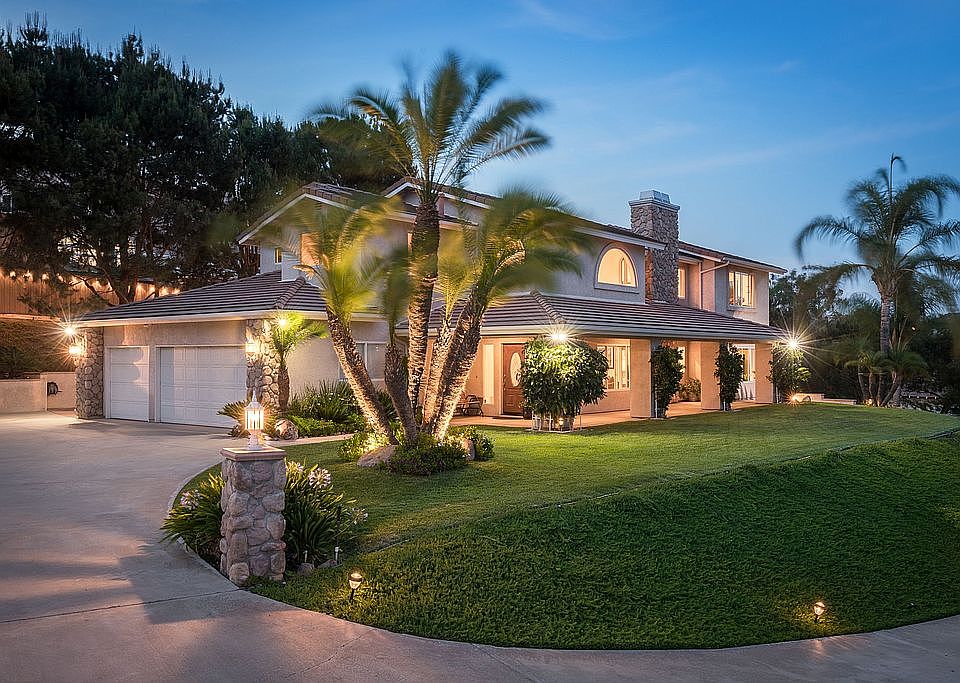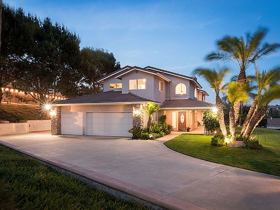 Spectacular 4 bedroom, or 5th bed optional entertainment home w/stunning views! This spacious & impeccable 2-story custom home is on a secluded private road. It is situated on a half-acre lot with vaulted ceilings and natural light throughout, open kitchen with matching wet bar, colossal GREAT room for entertaining, 2-built in surround sound systems, extensive security alarm, large master bedroom w/gorgeous master bathroom, 2-walk in closets & enormous office space, travertine floors, granite counter tops, and 2-A/C units. Outside has a detached workshop, large RV pad w/full hookups (big enough for 40’ diesel pusher), lush tropical landscaping, mature avocado and citrus trees, stamped concrete, LED security and pathway lighting, and fully automatic sprinkler and irrigation system for easy to care for landscaping. Every detail of this home has been meticulously cared for and is like a model home that is move-in ready and will be enjoyed for years to come! No Mello Roos or HOA!
