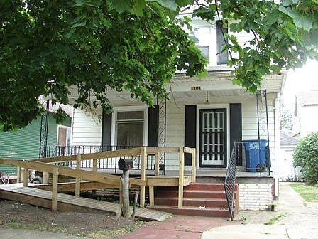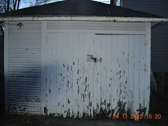 Exterior Features:This is a wood two-story house with white siding and a white trimmed with black shutters. The Windows are intact. The roof looks to be in good shape. The front house has a ramp for wheelchair access. Driveway undecided house to a one car garage in back. Foundation looks solid. Soffits and eves are intact.Interior Features:Kitchen is large cabinets are in good shape from top to bottom sink is intact floor is linoleum. Living room walls have wall paper that is in good shape with white trim and French doors that are white carpet is in good shape and is beige. The paint on the dining room walls is incomplete the walls earned good shape the floors are hardwood with white trim. First bathroom toilet, sink and shower are present. Carpet on the stairs leading to the second floor is in good shape. Master bedroom is in the front of the house with bait Windows walls earned good shape with white trim. Second-floor bathroom toilet sink and bathtub are present. The two bedrooms but walls earned good shape. Basement furnace hot water tank are present. Electric has circuit breakers.
