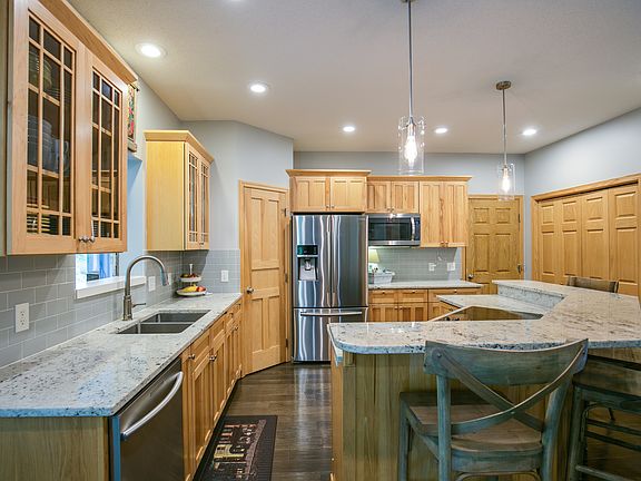 Fabulous two story completely fin up & down on beautiful corner lot. Quality construction & materials. Porch, maintenance free decking, paver walkways & patio, 2 gas FP, den, formal DR, custom wood work, huge heated 3 car garage, concrete drive. New addition on back finished up and down. Stained and stamped concrete patio in back with boulder retaining walls and amazing landscaping.