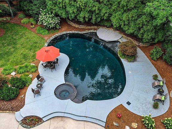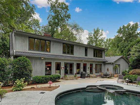 Scenic, private setting in the heart of desirable Hamilton Lakes minutes from Friendly Center and downtown Greensboro. Superior craftsmanship by one of Greensboro's premier builders, Bea Melton. Thoughtfully designed outdoor living spaces that include stunning inground saltwater pool and spa, custom decking, and patio. All season Pool House features lounge & half bath. Quality finishes include a gourmet kitchen with stylish cabinetry, upscale appliances, granite tops, & island with bar seating. Contemporary feel with an abundance of natural light throughout. Spacious great room has wood-burning fireplace, built-ins, and a wall of windows overlooking the backyard oasis. Living Room with view of lake and gas fireplace. Main level primary suite has deluxe bath and great views. Three additional bedrooms, two full baths, and bonus room on the upper level. Oversized laundry/mudroom has an adjacent powder room. Secluded .56 AC lot with beautiful established landscaping and irrigation.