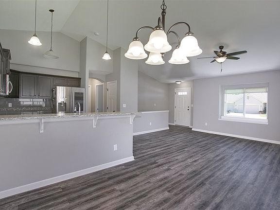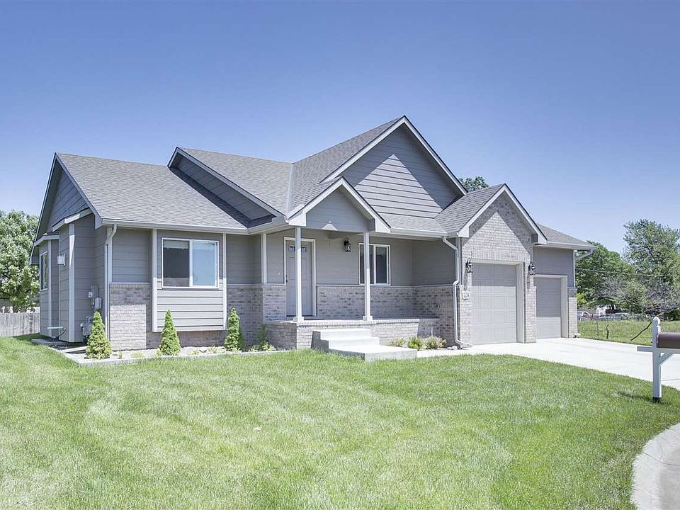 Welcome to your almost new home, located in the NE corner of Southampton Estates Addition, with NO specials or hoa dues!!!!! This two year old home has all the bells and whistles with an open floorplan. Main floor living space features a vaulted ceiling, wood laminate flooring, a gas fireplace, and a large kitchen with granite countertops, large eating bar, and stainless steel appliances. Main floor master suite with walk in closet, double vanities, walk in tile shower and separate water closet. Main floor laundry room. Daylight basement features an oversized family room with a walk up wet bar, two additional bedrooms, a full bathroom, and a large storage room. Attached three car tandem garage and sprinkler system, covered patio. Located one block away from Kirby Park, this home is neutral throughout and move in ready!