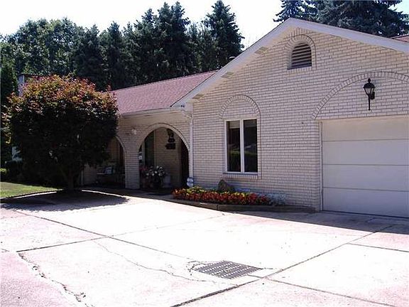 HUGE custom built ranch w/ 3 gar. bays, finished walkout basement and 2 covered patios. All brick, roof only 10 mo. old, furnace 2 years. Level entry with attached 1 car garage and laundry room on main level. Kitchen and dining room were designed w/ family gatherings in mind. Lower level has FP, full BA, small kitchen walks out to back yard, could be sep. living area. Main level has gas forced air heat, lower level is hot water baseboard. Pittsburgh suburb NE 20 miles.
