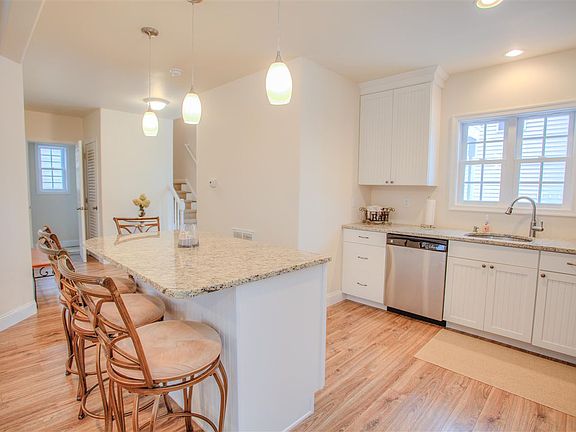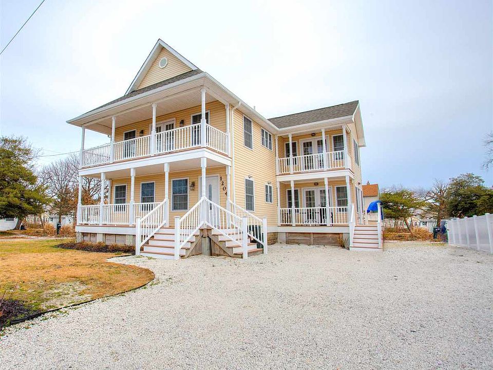 1204 Millman Lane, Lower Township, Delaware Bay View Stunner! Multiple Decks, Amazing Water, and Beach Views, Like New 4 bedroom, 3.5 bath gorgeous home, located on the corner of Atlantic and Millman, across from the bay with beach access right across the street from the home. Fantastic open floor plan living/great room, light bright and airy kitchen with center island and stainless steel appliances, granite counters and topped off with crisp clean white cabinets. This amazing space is on the lower level with a large front deck to allow easy flow for guests and family when entertaining. The dining room has French doors leading to the trex deck and a great space to relax. There is a bedroom with private bathroom, hall powder room, laundry, and a pantry. The top floor has soaring cathedral ceilings, includes a loft and is where you will find the other bedrooms. The master suite has a sitting room, large walk in closet, ensuite bath with tiled shower and double vanity. Large decked covered porches surround the second-floor bay front of the home offering beautiful views from the master bedroom and a guest bedroom. Plenty of parking, outside shower, detached garage, partial unfinished basement with access inside the home and from outside too, to store all of your beach supplies and toys. This home is a looker, move in ready and worth making an appointment today. Easy to show, call you favorite Realtor today. Furniture included: Bar Stools, King Bed and bedside tables. White cabinet in downstairs bedroom. This property is not located in a FLOOD ZONE. Great new beach entrance across from home. No flood insurance required. More information in sellers disclosure to include basement photos and sellers disclosure.