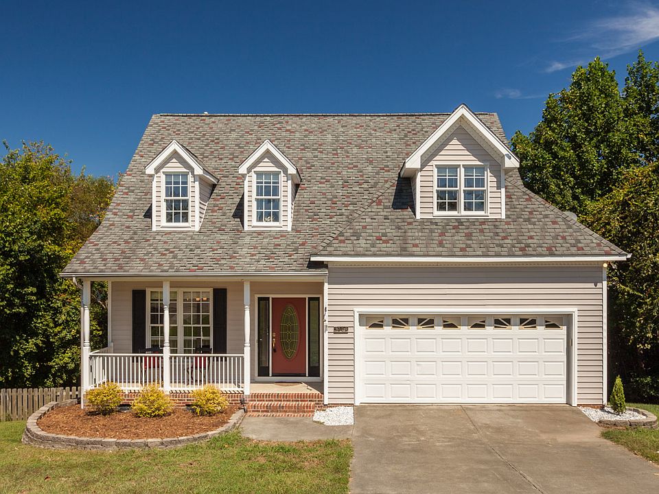 Charming 3 bedroom, 2.5 bathroom Cape Cod home in Wake Forest! Enjoy natural light throughout the main living area as you make your way from the covered front porch into the dining room, kitchen, and living room. The breakfast nook leads out onto a beautiful screened-in porch overlooking the fenced-in backyard. Upstairs you will find both guest bedrooms and a spacious primary en-suite featuring his and her closets, a tray ceiling, dual vanities, and garden tub. Convenient access to I-540!