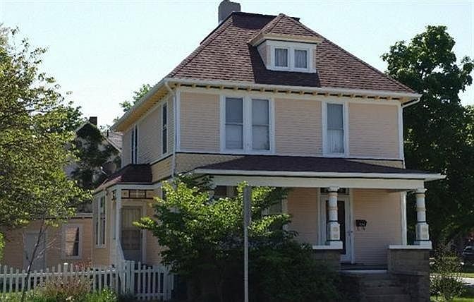 Charming 4 bedroom, 2 bath home with 9ft ceilings in a convenient in town location. Newly painted exterior and 3 year old roof. Step into the foyer and see hardwood floors and beautiful stain glass doors and wooden staircase. Enter the large living and dining room complete with hardwood floors, ornate fireplace in dining room, parlor room with plank flooring and large doors. Could be used as another bedroom or an office. Main floor laundry off of kitchen which offers lots of cabinet space. Claw foot tub in main floor bathroom. Dual stairways lead to four large upstairs bedrooms and a full bath. Mostly carpeted upstairs. One car detached garage with private drive.