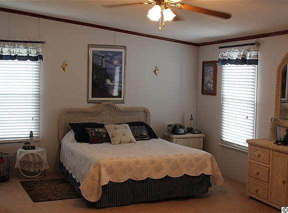 You'll LOVE this manufactured in Cherry Grove. Immaculate, well maintained double wide in quiet area close to beach. New mechanics include HVAC, HW Tank, and Roof. New carpeting throughout living area. Functioning wood fireplace. Large rooms and excellent closet/storage space. Master bedroom walk-in closet measures like a small room. Property offered with home warranty.
