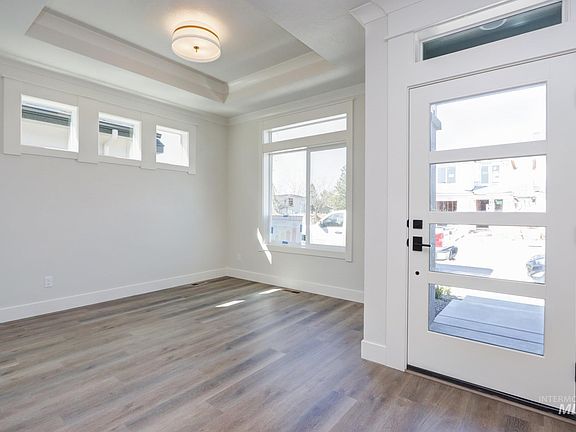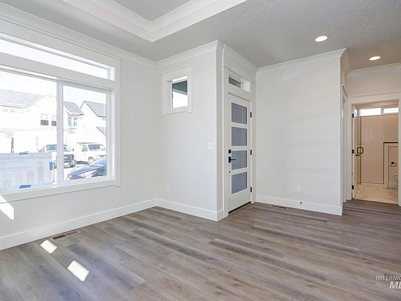 Less than 1 mile from the Village, Meridian's premiere entertainment and shopping destination and less than 5 minutes to I-84, and medical facilities ALL within 15 minutes to downtown Boise. WOW-two suites PLUS Bonus/office or 3rd Bedroom with storage and its own bath ALL on 1 level with a finished and insulated three car garage. STORAGE is everywhere, built in desk too! Experience award winning design as seen in the kitchen complete with stainless steel appliances-5 burner cooktop oven/range, microwave and dishwasher. The butlers pantry has storage galore, even a countertop to hide used appliances to maintain the sleek, modern look of the custom cabinets in kitchen. Stunning interior architecture as seen in the varied ceiling heights, window size and placement, dramatic and extensive moldings. LOOK at the utility room with quartz counterspace, sink and cabinets. ALL cabinetry is custom built having soft close doors and drawers. Quartz, Tile & LVP surfaces throughout. Photos are of this home-MOVE in ready!