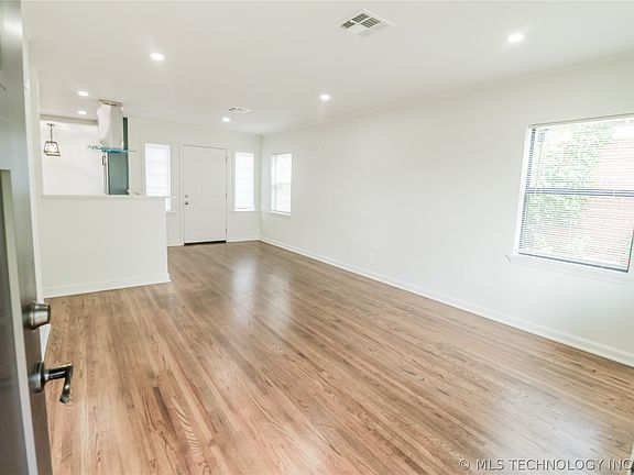 Welcome to your perfect home! This thoroughly renovated home has a brand new roof and air conditioning system, ensuring comfort and peace of mind for years to come. Step inside to find a modern open floor plan with gorgeous quartz countertops, elegant custom cabinets, and quality brand new tile flooring throughout the kitchen and bathroom. Experience the tasteful custom shower in the bathroom. Admire the attractiveness of refinished original hardwood floors throughout, which combine timeless elegance and contemporary flair. This home, situated on a desirable corner lot, provides stunning views of the skyline from its inviting covered front porch, promising infinite moments of solitude and inspiration. This home is just around the corner from the Tulsa Country Club, accessible to highways and just minutes from downtown!