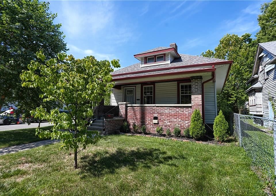 This move-in ready has tons of charm with original details. In a up and coming area, close to church, shops and downtown. The fireplace is gorgeous with original tile. The living room with original columns overlooks the formal dining room. Kitchen is large and includes newer cabinets and appliances. Beautiful quartz counter tops! Butlers's pantry has original built-ins. Sunroom has room for your ideas. Two bedrooms with a jack and jill bathroom. Includes newer windows, furnace/AC, PEX, soffits, gutters and roof. Walk-up attic has tons of potential for a master suite. Large full basement has potential. Enjoy summer nights on the covered front porch or enjoy the secluded patio in a large backyard. Corner lot. This home is a fabulous price!
