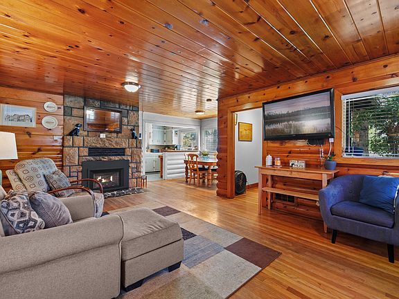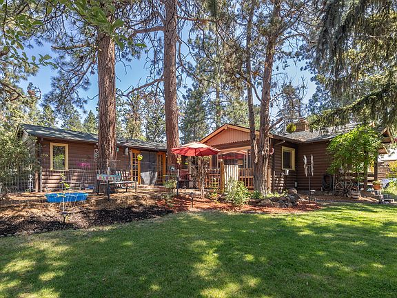 Welcome to this charming three bedroom, two bath home, situated on a corner lot, in the highly sought-after Midtown location. As you approach the property, you will be greeted by beautiful mature Ponderosa Pines, surrounded by natural landscape and a well-maintained yard. The original log constructed home has been lovingly cared for and well maintained over the years. Spanning 1,867 square feet, this home offers a comfortable living space with a cozy living room featuring a stone-faced fireplace, a kitchen, an office, and a utility room with an expanded pantry. The primary bedroom has been expanded to include a private den and two French doors that lead out to the front deck, offering a peaceful retreat. Situated on a park-like setting spanning .19 acres, this property also boasts a detached two-car garage measuring 588 square feet. With its desirable location, charming features, and immense potential, this is a must-see property that ticks all the boxes.