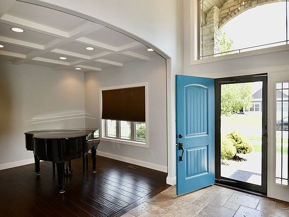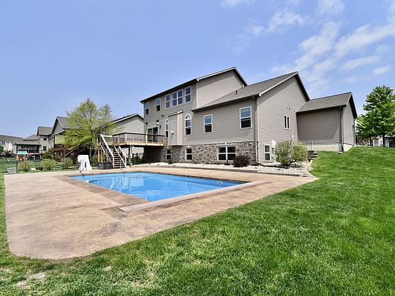 Wow! Peace and serenity...this amazing home in Sapphire Lake has an inground saltwater pool and is on a lake lot!! The open, 2 story entry and great room welcome you in to this beautiful home. The main floor has a generous sized dining room, large eat in kitchen, laundry, mud area, a 1/2 bath and main floor owners' suite. There are lots of travertine tile floors, high end appliances, whole house audio, central vac rough in, finished lower level with theater area, family room/ workout area, full bath, large bedroom, daylight windows, water back-up on sump, and surround sound. Upstairs are 3 additional bedrooms and a full bath with landing that overlooks the entry and great room. Outside you will find the fabulous deck overlooking the lake with amazing sunset views. The fiberglass salt water in-ground pool w/ heater, has lights, 4 fountain jets, an automatic cover and a beautiful colored stamped patio. The backyard yard is fully landscaped and fenced with an irrigation system in place. Built in cabinets in the great room, locker system off of the heated 3 stall garage where you can charge your electric car. Home has been freshly painted.