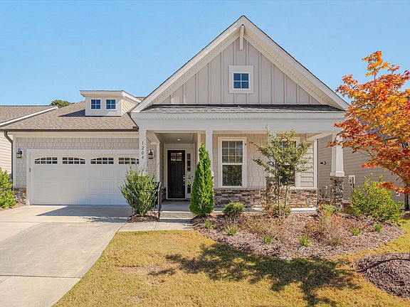 Built in 2019, this beautiful one-story home was designed with careful consideration for every comfort and detail. You're welcomed in with high ceilings and hardwood floors, leading you through the fully upgraded kitchen, open living area, then back to the sunny dining space, making this the perfect floorplan for entertaining. On sunny days, take the party outside to your private screened porch and patio in the fenced-in backyard. The large kitchen island invites you to pull up a seat with your morning coffee or to enjoy a cozy chat with friends. The large pantry, considerable cabinet storage, gas range, and built-in oven & microwave keep everything at your fingertips while prepping your next amazing meal. It's both beautiful and functional, with the counter-to-ceiling backsplash behind the range hood adding an upscale focal point to complete the room. The two secondary bedrooms are tucked away in the front of the house, providing privacy and quiet. The large, natural light-filled primary bedroom is located in the back of the home, offering extra privacy and designed to meet every need. The custom closet makes wardrobe organization stress-free, ensuring that every item has a dedicated space. The primary bath was carefully thought out with relaxtion in mind, complete with an expansive custom rainfall shower that never runs out of hot water thanks to the tankless water heater. Located just 5 minutes from I-40 and Southpoint shopping & dining, and easy access to both RTP and Chapel Hill, 1204 Pondfield Way offers every convenience imaginable!