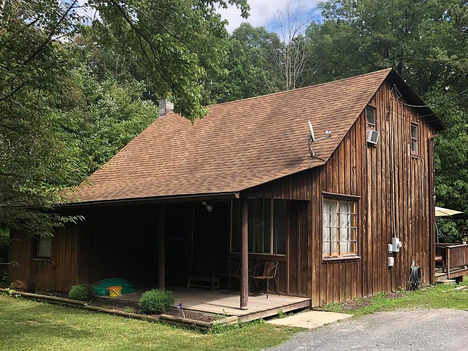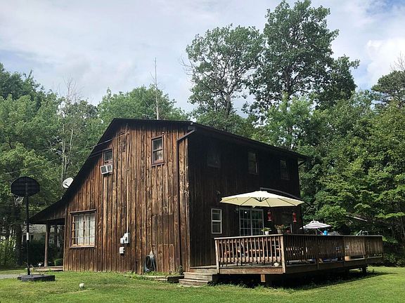 RUSTIC CAPE COD! Lovely rustic 3 bedroom, 1 bath cape cod with hardwood floors, stone backed wood stove that heats the whole house, shed, outbuildings, 4 ceiling fans, slider to deck from laundry area. Back deck is 12x29. Come see this great starter home. Dues are only $13 per month. Pleasant Valley School District.