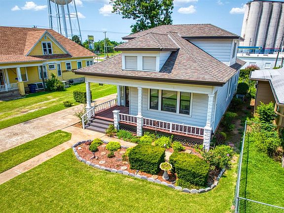 Charming curb appeal and a classic front porch with beautiful landscaping. This is such a welcoming home with new interior and exterior paint. This 3 bed 2 bath home has been very well maintained. Come sit on the front porch and relax! New hot water heater 2023 and new roof 2022. Large living room with gas fireplace and large windows for lots of light in the home. Windows are newer throughout the home. Large oversized 2 car garage with plenty of room for a workshop. Garage also has a safe room. Covered back porch and inside utility room.