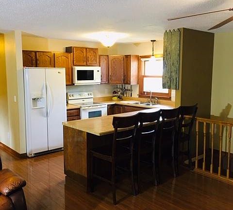 mUpdated 3 bedroom home with open living/dining and kitchen. Snack bar. Laminate flooring through-out main floor. Lower level has a large family room and a unique designed master/bonus room with walk-in closet and bathroom. This home sits on 2 city lots offering room for the playset, dog house, gardening and much more. Paver and concrete pad off rear garage door. New shingles and repair of hail