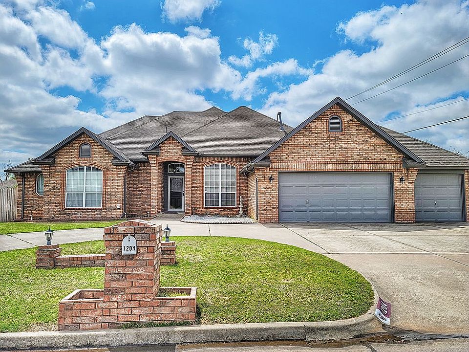 Higher Quality of Living in a quiet and welcoming neighborhood. Located in the Kingsridge Addition, This beautiful 2175 sq. feet home is the perfect home for anyone! This beauty has 4 large bedrooms, 3 full baths and a 3.5 car garage. Large circle driveway. Formal dining room and spacious kitchen with Plenty of cabinet space. The kitchen has been completely updated with granite countertops, tile backsplash and stainless steel appliances. Bathrooms have been remodel with new tiles and fixtures. Open floor plan flows well for family and entertaining. Living area has high ceilings and beautiful gas fireplace with large windows for natural lighting. Spacious master bedroom with high ceilings and bath with double vanities and jetted tub. 2 bedrooms are connected with a Jack and Jill bathroom on the opposite side. Lovely patio area with large backyard. NEW AC, NEW HEATER, NEW HOT WATER TANK, AND NEW PAINT!!! ONE OWNER HOME VERY WELL KEPT AND CLEAN. You can't beat this value or location! Elementary school is within walking distance and the Merrill Medley Park with jogging trail is located right inside the neighborhood! Come see for yourself why this home should be yours! Call 405-210-4847 to schedule a showing.