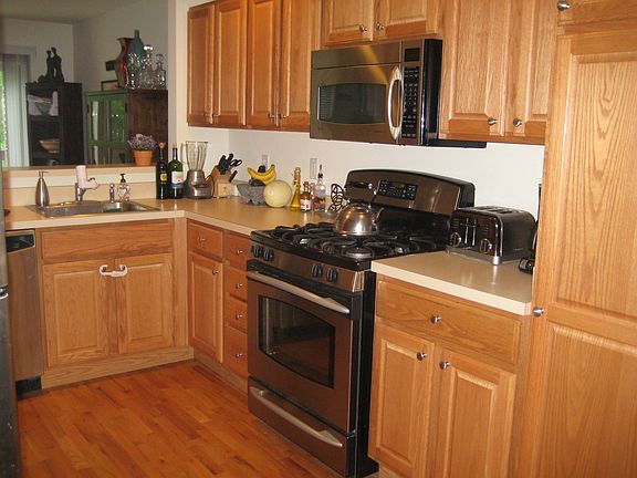 Fantastic Rental Value! Very large 2 bedroom townhouse style condo for rent. Built in 2005, the Arlington Woods Condo Development offers luxury living in a family friendly community. Amenities include clubhouse with a gym, pool, and private party space. The unit has a single car garage, that enters the home on the main level. No stairs to climb to bring in groceries! Two large bedrooms upstairs each with its own full bath. Master bedroom has cathedral ceilings and large walk in closet. Main level consists of kitchen with all hardwood floors, stainless steel GE monogram appliances, dining room and living room with gas fireplace and a half bath. The unit is wired for AT&T U-Verse fiber optic phone/TV/internet service - the best! The main level also includes a large deck, opening to a wooded backyard with lots of privacy. Finished walk-out basement with 12' ceiling could easily be used as a third bedroom. Basement has separate full bath, and large unfinished storage room in the rear of the unit. Central air, gas forced hot air heat and gas oven/stove. City water. Plenty of guest/overflow parking for multiple vehicles. Available mid July 2012. Some flexibility for move in dates. Similar units currently renting for $2,100 to $2,200 per month in the same complex! Won't last long! Rent now!