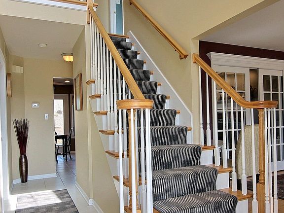 Beautiful 2 story, 3 bedroom, 2 1/2 bath home in desirable Eagle Ridge Estates. Original owners, custom built. Kitchen and main level laundry room recently upgraded with gorgeous granite countertops and deep drop-down sinks. Center island provides storage and ample prep space. Main level features tile and hardwood floors. Sliding french doors separate the living room and library with built-in shelving, a readers dream come true! Tray ceiling in dining room. Gas fireplace on main level. Huge master bedroom comes with an amazing California Closet system. Master bath has whirlpool tub and large walk-in shower. 2nd bedroom has built-in shelving and a window seat. 3rd bedroom features wainscoting detail. Finished basement with ample storage, gas fireplace,cultured stone surround. Basement has roughed-in for a bathroom/office. Backyard has a stamped concrete patio and side walkway. 4ft landscape retaining wall with unilock bricks, brick lights and stereo speakers. This home is a must see!
