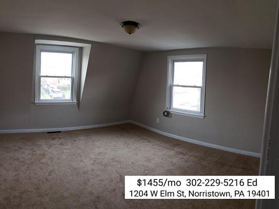 Spacious and naturally well lit, new kitchen and floors. 3 bedroom, 1.5 bathroom house. $1455.00/mo, $1455.00 security deposit. Call Ed and Leave Message at 302-229-5216. 1st mo, last mo, and security deposit required. Background and credit check required.