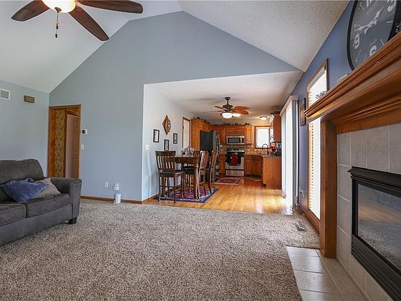 - Features: Carpet, Ceiling Fan(s), Fireplace