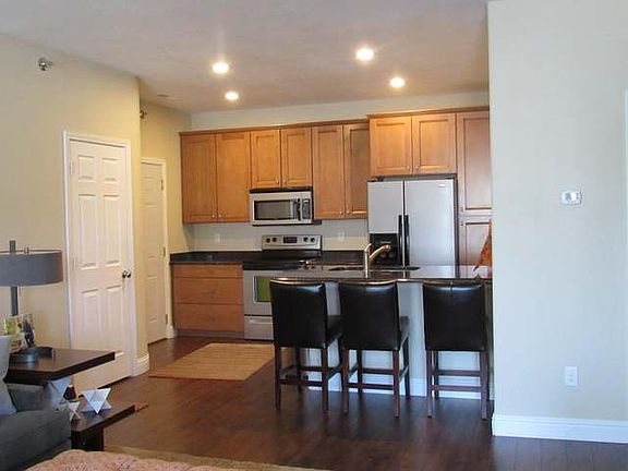 This move-in ready upper level condo features vaulted and 9ft ceilings and spacious living area. There are handscraped hardwood laminate floors in the kitchen and living areas. The kitchen has beautiful granite countertops with undermounted sink, stainless steel appliances and gorgeous rich maple cabinets. The master bedroom is spacious and offers a walk-in closet plus additional closet. The master bath has a shower and sink with granite counter. There is another large bedroom plus full bath. The full bathroom also features a granite counter. There is a 1 oversized stall attached garage and an elevator. This is a secure condo which allows pets! Great location close to YMCA, Tom O'Leary golf course, BSC, shopping, and great walking trails!