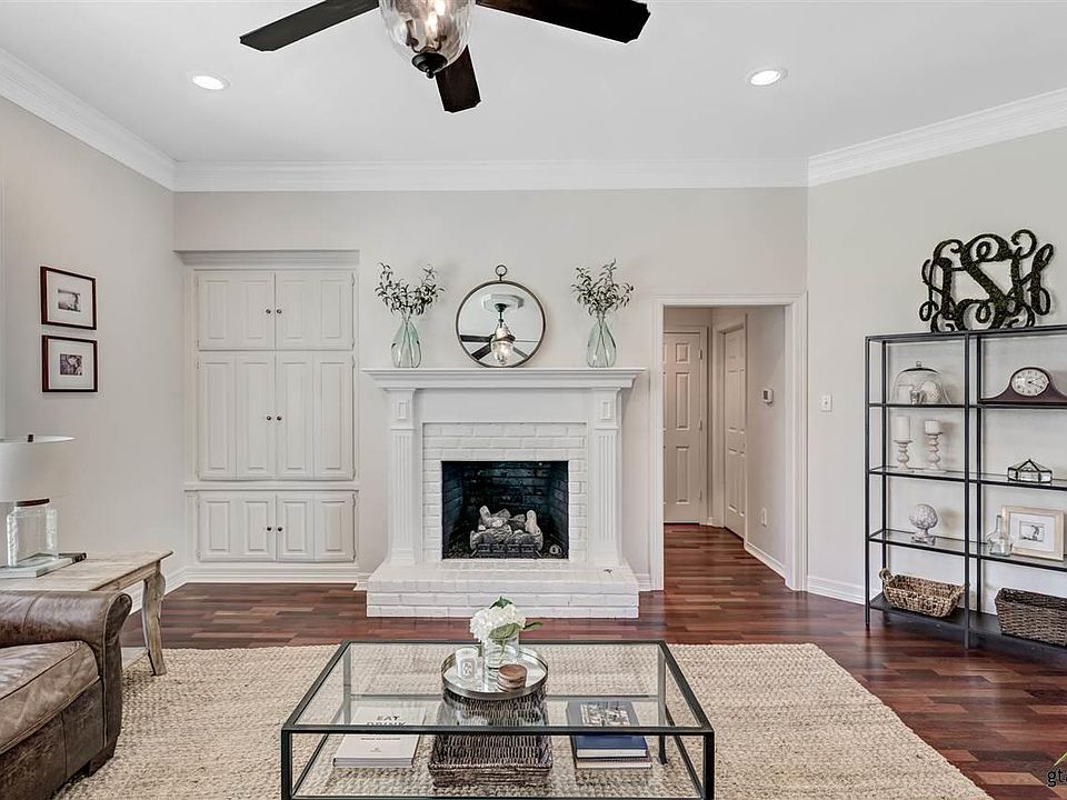 This Joanna Gaines, Magnolia-inspired 3-bedroom, 2-bathroom home is move-in ready with pristine hardwood floors, new carpet and recently installed granite and backsplash. Beautifully updated and well-maintained, this Woodcreek home is located in a very desirable area and dons such upgrades as stunning light fixtures, luxe brass cabinet hardware & bathroom fixtures, and fresh paint throughout. With an open social floorplan, the kitchen opens to the spacious living room, which is anchored by a charming, white-brick fireplace, as well as the dining room and its soaring ceilings. The large, sequestered master retreat features a tray ceiling, a large bathroom vanity with separate sinks, garden tub, shower, and his & hers closets. This home offers ample storage, large bedrooms and a substantial backyard and patio with newly planted Crepe Myrtles. This one won't last long. Schedule your private tour today.