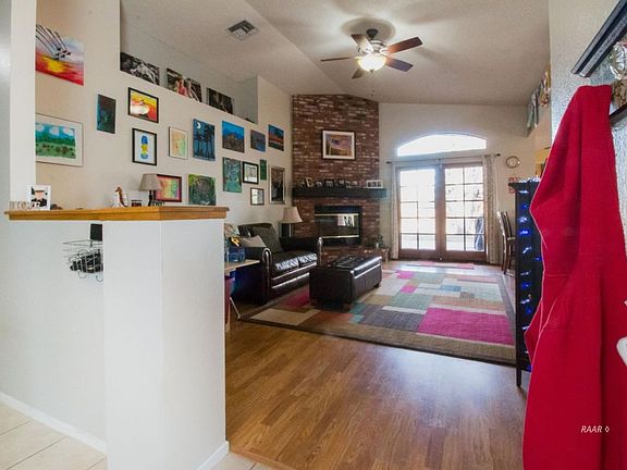 Beautiful 5 bed, 2 bath home in ideal NorthWest location! Appreciate open concept living, vaulted ceilings & great natural light all throughout this home. The home features two separate living spaces, a spacious kitchen w/ breakfast bar, and a dining nook. The family room has a grand floor to ceiling corner brick fireplace & french doors leading out to your large covered back patio. The master suite is complete w/ vaulted ceiling & fan, walk-in closet, bathroom w/ double vanity & private toilet, as well as access to the backyard. All guest bedrooms in the home are carpeted w/ ceiling fans and great closet space. The home has a 2-car garage w/ a 3rd bay that has a finished bonus room, making perfect space for a home gym or office! This home sits on a large lot, w/ a generously sized patio and mature trees in the back.
