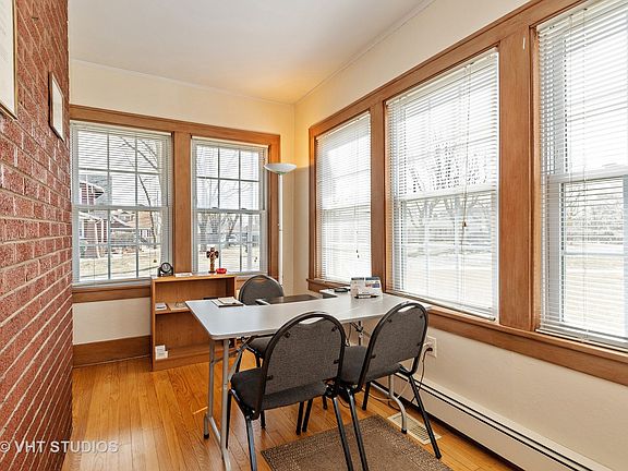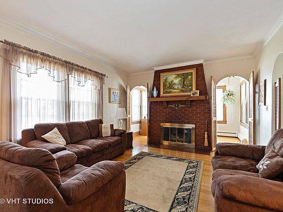Impressive condition, 2 story very large brick home with a big yard and 2 car garage in a quiet neighborhood. Spacious living/dining rooms and two first floor bedrooms plus office/sun room, large kitchen with custom walnut cabinets and a full bath. Beautiful hardwood floors throughout the home. Living has gas fireplace. 27 new windows recent appliances. Full partially finished basement water proofed EZair system. 2 huge bedrooms and full bath upstairs.
