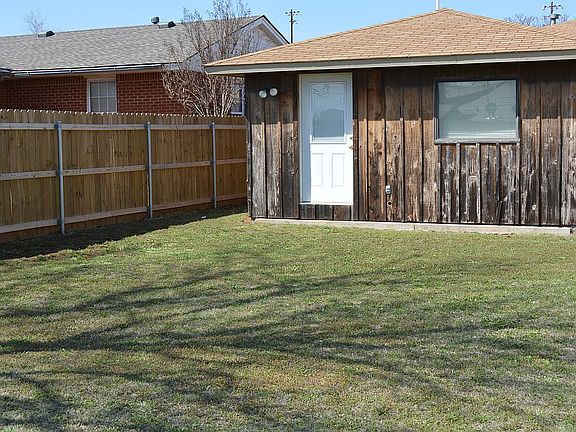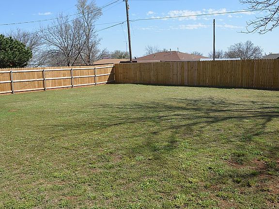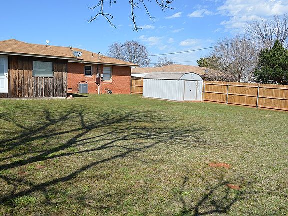 Charming 3 bedroom home that can also be used as a 2 bedroom with an additional family room/den/man cave (see pictures). This cozy home is just under 1400 sq. ft., is move in ready, has been remodeled and sits on a nice sized lot with a large back yard. The back yard features a new 6 ft. privacy fence (steel posts in concrete; built in 2014) and a brand new 10x14 metal storage building on a concrete slab (built in 2015). The home has central heating and air conditioning with a new gas heater 2017 and has crown molding in the living, dining and kitchen. The kitchen includes new cabinets and pantry that includes convenient pull out shelves, good counter space, dishwasher, side-by-side refrigerator and gas range. The bathroom has also been updated and includes a deep, jetted bathtub. Flooring includes hardwoods in the living, dining and 2 of the bedrooms; tile in the kitchen and bath; new luxury vinyl plank flooring in the 3rd bedroom/family room. New roof put on in July 2020. This home also has an attached single car garage. Please call Heidi @ 580-309-2937 to view this great home!