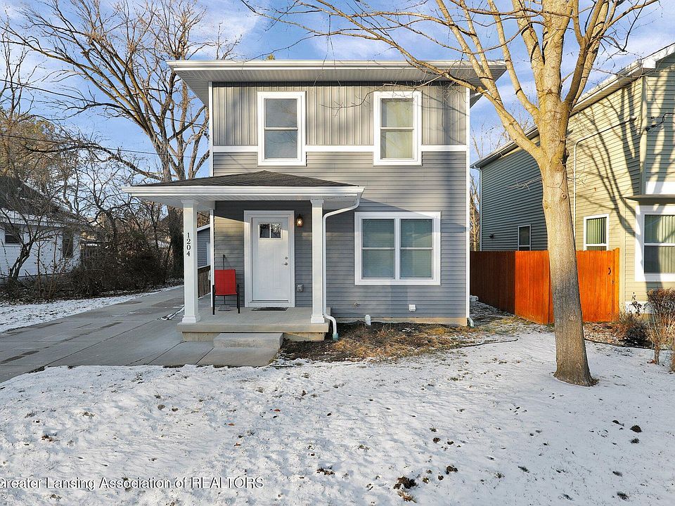 Welcome to 1204 Wolf Court. Built in 2019 it has that new home feel. The home greets you with a covered front porch. The main level offers an open concept floor plan, with recessed lighting and loads of windows. Great for entertaining. The main level also features a first-floor laundry and spacious half bath. The second level has two good size bedrooms along with the primary bedroom with a walk-in closet. The lower level has an egress window and is ready to be finished. Nice private backyard, one car garage with ample storage space. Don't miss out on the reasonably priced new home in East Lansing. Schedule your showing today.