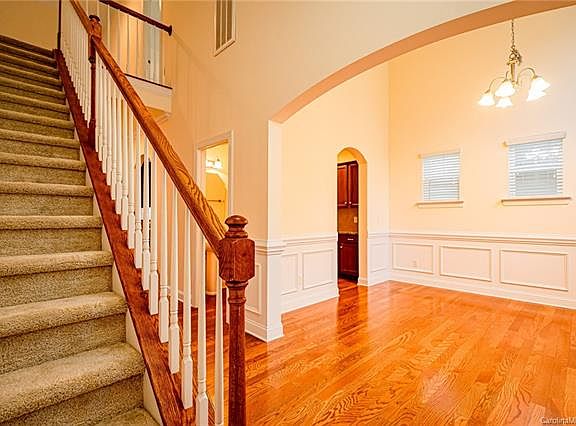 Don't miss out on the amazing opportunity to own this 1.5 story, 3 bedrooms, 3.5 bath home in the lovely community of Callonwood in Matthews. Upon entering this home, one can't help but notice its gleaming hardwood floors and high ceilings. Not only will you find a 2 story great room with a fireplace on the main level, but you will be blown away by the simple yet elegant kitchen that offers an open concept, extra cabinet storage and beautiful stainless steel appliances. Enjoy your morning coffee or tea in the spacious breakfast area that looks out into this homes fabulous fenced in yard. The first floor also offers a luxurious master bedroom with a master en suite that includes his and her sinks, a relaxing garden tub and a roomy walk in closet. The second floor offers a calming loft area, 2 additional spacious bedrooms, 2 full bathrooms, and a bonus room perfect for sleep or play. Come see this amazing home.