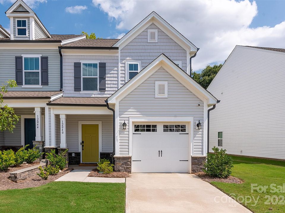 Experience modern living in this immaculate townhome located in The Landings at Catawba River! This beautifully maintained 3-bed, 2.5-bath residence features a bright and airy open-concept floor plan, enhanced by additional windows as an end unit. The dedicated dining area seamlessly connects to a cozy living room, offering picturesque views of the private backyard. Step outside to the back patio, complete with a privacy fence, ideal for outdoor entertaining or relaxation. The contemporary kitchen boasts an eat-in island, quartz counters, and a generous sized pantry. Upstairs, you'll find a laundry room and two well-sized guest rooms sharing a thoughtfully designed hall bath. The primary suite features a large walk-in closet and a luxurious ensuite with a dual vanity and shower. Benefit from existing builder warranties on this nearly new construction. The community offers walking trail and is conveniently located near the White Water Center, shopping, major highways, and CLT airport.