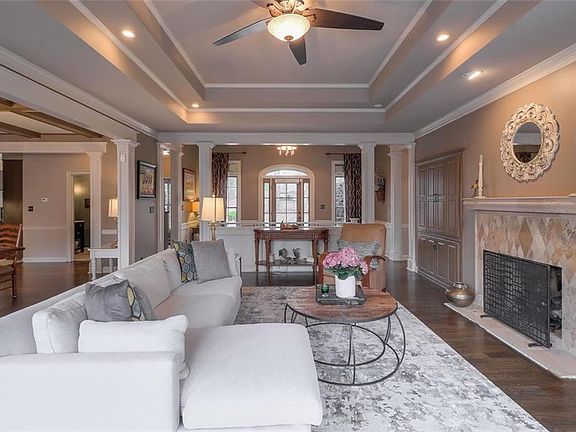 Gorgeous Executive home in Brookfield CC; Stunning details and open floorplan; hardwood; Updated Chef's kitchen w/oversized island; Formal Dining Room with coffered ceiling, fireside Great Room w/double trey ceiling opens to expanded Trek deck overlooking pool and private backyard; Elegant Master suite showcases oversized shower, soaking tub, h/h vanities, custom closet; 3 more spacious bedrooms; Terrace level with game room, tv room, full bath, office and workshop area; Outdoor living space is perfect for entertaining and relaxing; pool and patio area. Don't wait gorgeous home, close to historic Roswell, schools and parks.