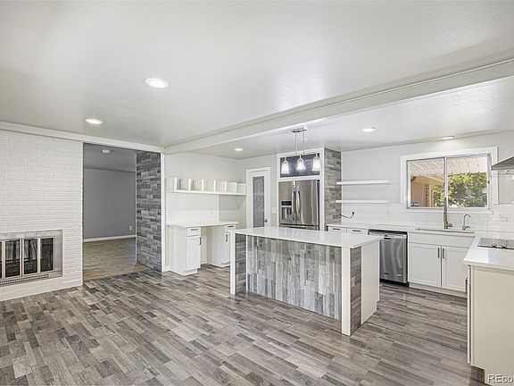 Charming 3 bedroom, 3 bathroom home in Aurora now on the market. The updated, sleek kitchen boasts ample shelving and counter space, complete with a breakfast bar. The open-concept flows into a living room with natural lighting and a cozy fireplace. The primary bedroom features hardwood floors and an en-suite bathroom. Step outside and you'll find a covered patio and fenced-in yard, perfect for entertaining. Don't wait to make this home yours! This home has been virtually staged to illustrate its potential.