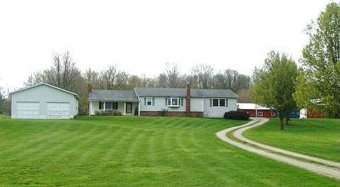 Wonderful setting on 37.5 acres with a 4 acre pond and cabin. Deck area overlooking the pond for entertaining and relaxing with a view. Ranch house has 5 bedrooms, 2 baths, large living room with fireplace, spacious kitchen with lots of cabinets, recreation room and enclosed porch. Tons of storage and built-ins. Master suite with walkin closet and private bath. Barns, pole barns, 3 bay carport and plenty of land!! Close to Mount Vernon. A must see property.