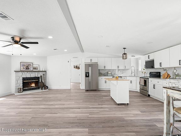 AMAZING opportunity to own 2.5 Acres of agriculturally zoned land that can be utilized for residential, farming, livestock, or any number of infinite possibilities you can dream of. This highly desirable location is peaceful, serene, and private. It boasts a spacious and newly renovated 4 bed 2 bath with over 1647+ sq ft. of living space. All of the peace of mind boxes are checked in this gem! Here are just a few noteworthy items: New exterior/interior paint, new luxury vinyl flooring/lighting throughout, a gorgeous bright kitchen, all new stainless steel appliances, new shaker cabinets, porcelain backsplash, and granite countertops. The area flows seamlessly over to the farmhouse-style family room which showcases a cozy refurbished log fireplace, fully functional for gathering around on cool nights. Bathrooms, new vanities, flooring, energy-efficient toilets, custom shower tiles. Newer HVAC was recently maintained/serviced by a certified HVAC technician. This beauty may be off the beaten path, and far enough from the hustle and bustle, but yet it is just minutes by car to Cortez Blvd/SR 50 where the roads are lined with storefronts. Major retail, grocery, wholefood, and wholesale stores. Not to mention the diverse variety of dining options. Its close proximity to the local hospital and Suncoast Parkway makes for added convenience. Approx. 45 minutes to Tampa, and 1.5 hours to Orlando.