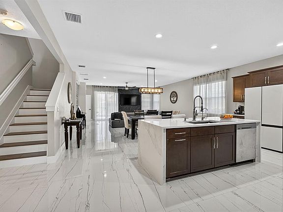 Rare Opportunity! Renovated 5-beds, 2.5-baths home in RPB. Updated with high-quality materials & refined finishes, offering the perfect blend of elegance, comfort, & functionality. Enjoy a spacious, open-concept first floor w/ modern design touches, including a striking decorative fireplace & accent wall. The large primary suite downstairs features a luxurious frameless glass shower. All impact windows for peace of mind & natural light, New AC, new & pool pump. Step outside to your private retreat: a fenced backyard with serene water views, a saltwater heated pool & spa, a paved patio perfect for entertaining. Ample space for your ideal lifestyle. Located at walking distance to shops, restaurants, & supermarkets. Live in luxury & comfort in one of the most sought-after areas in Florida.
